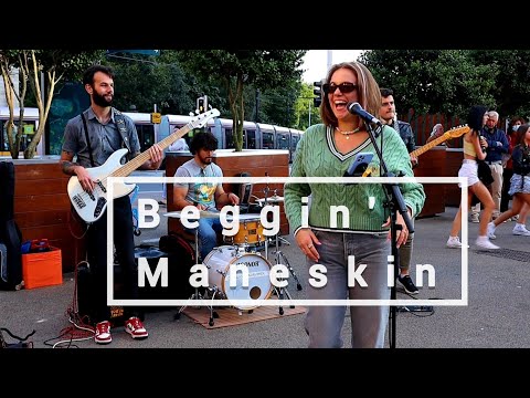 'CROWDED STREET STOPS IN AMAZEMENT | Beggin' - Maneskin | Allie Sherlock & The 3 Busketeers cover'
